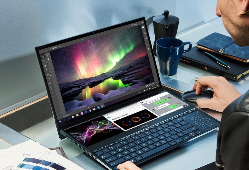 ASUS TeK Computer lanzó al mercado una laptop de doble pantalla. Se trata de ZenBook Pro Duo, una pantalla principal de 15.6″ y una segunda pantalla táctil de 14”, que la empresa bautizó como ScreenPad Plus. También dio a conocer una versión más pequeña, la ZenBook Duo, que tiene un display principal de 14″ y un ScreenPad Plus de 12,6″.
