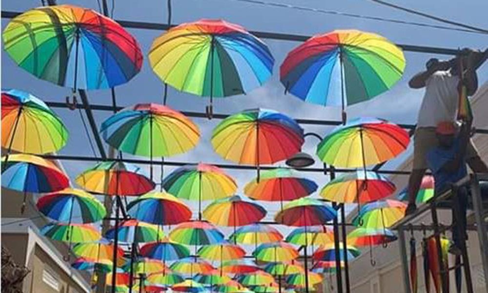 Un equipo trabaja desde hace una semana en la colocación de decenas de sombrillas multicolores para decorar y embellecer el tramo a intervenir.