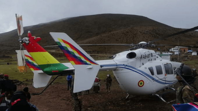 El suceso ocurrió a las 12.48 locales (16.48 GMT) e involucró a la aeronave EC-145 que iba a trasladar a Morales desde la localidad de Colquiri, en el departamento de La Paz, hacia la región vecina de Oruro, según un comunicado de la FAB.