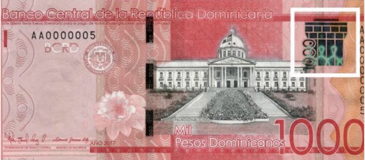 Este billete contiene las mismas características de seguridad de los billetes de RD$1,000.00 pesos dominicanos actualmente en circulación, los cuales mantendrán su fuerza liberatoria para el pago de todas las obligaciones públicas y privadas.