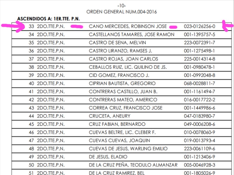 La Policía Nacional justificó el ascenso del pelotero de grandes ligas Robinson Canó, afirmando que este trabaja en el área deportiva de la institución brindando sus conocimientos a los miembros de la institución que practican béisbol y que participa en los encuentros de proximidad con la comunidad que realiza la uniformada.